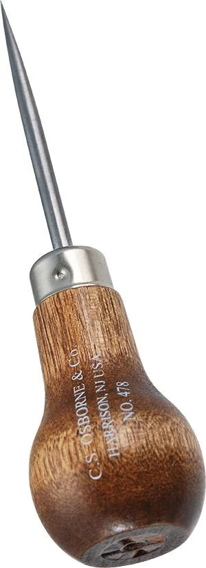 Neliels buru šūšanas īlens ar rūdītu asmeni, paredzēts ādas caurduršanai, šūšanai un dažādiem mērķiem.